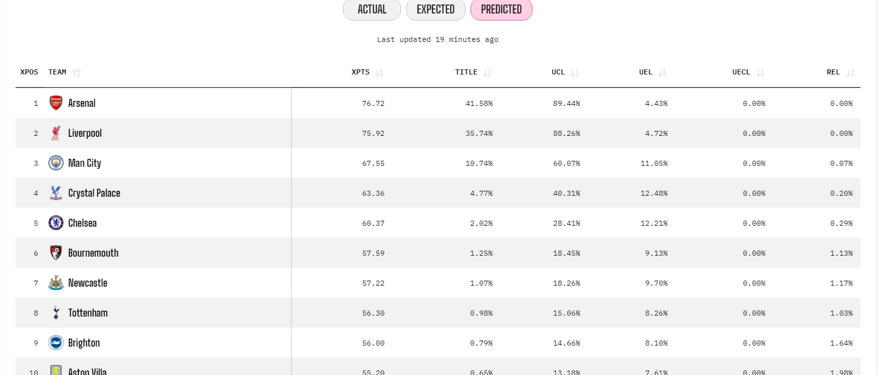 với kết thúc năm trận đầu tiên của vòng 7 của Premier League, Opta cũng đưa ra dự đoán mới nhất về tình huống vô địch - hiện tại là một người nổi tiếng.